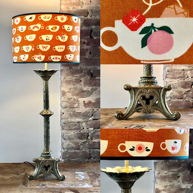 De lampvoeten van deze serie zijn aangekochte vondsten, nieuw of preloved. Samen met een kap van Gloei zijn ze uniek, oftewel one-of-a-kind! Alle fittingen, pendels, sierdeksels, sierringen en snoeren zijn nieuw gemonteerd in ons atelier in Nederland. De handgemaakte kappen zijn nieuw.